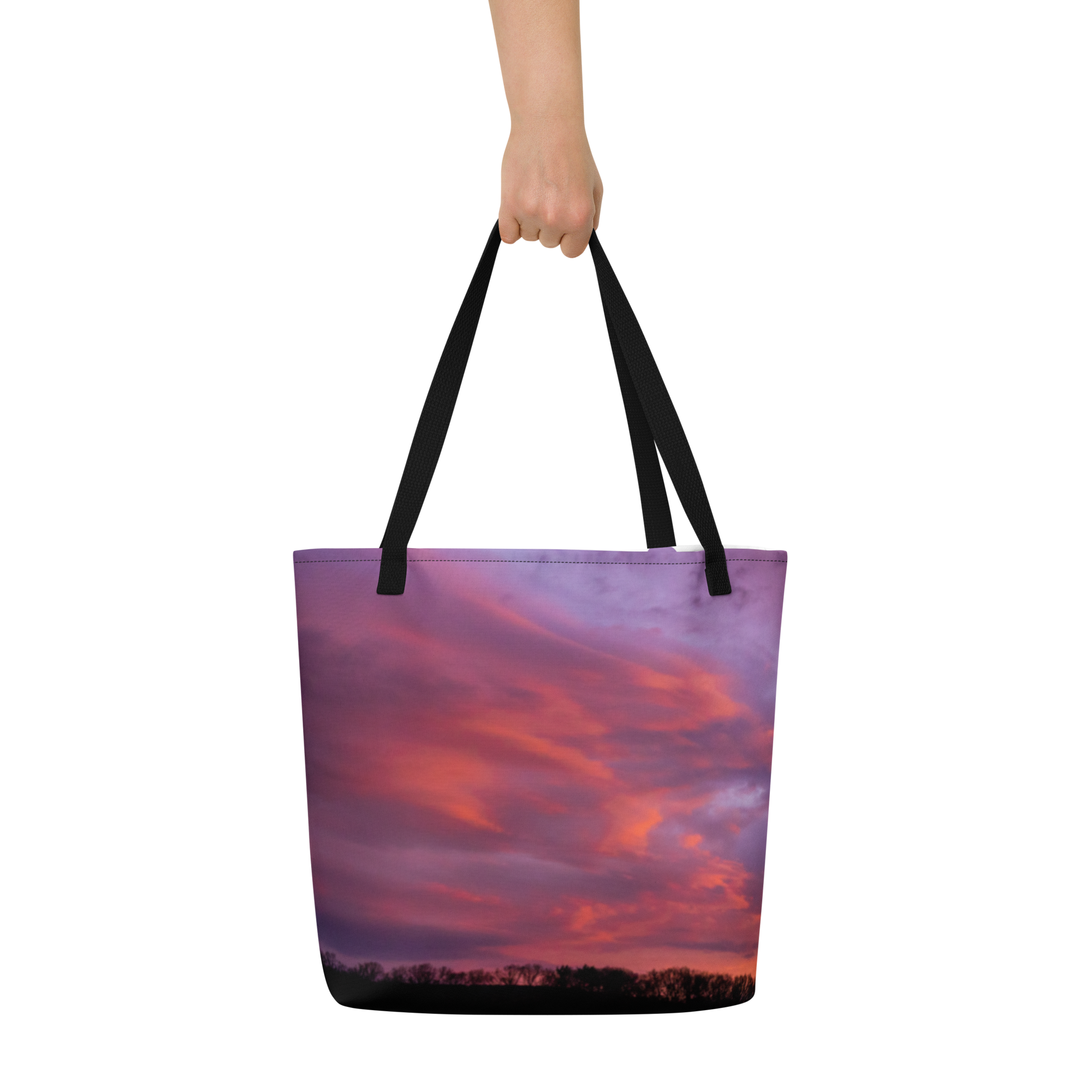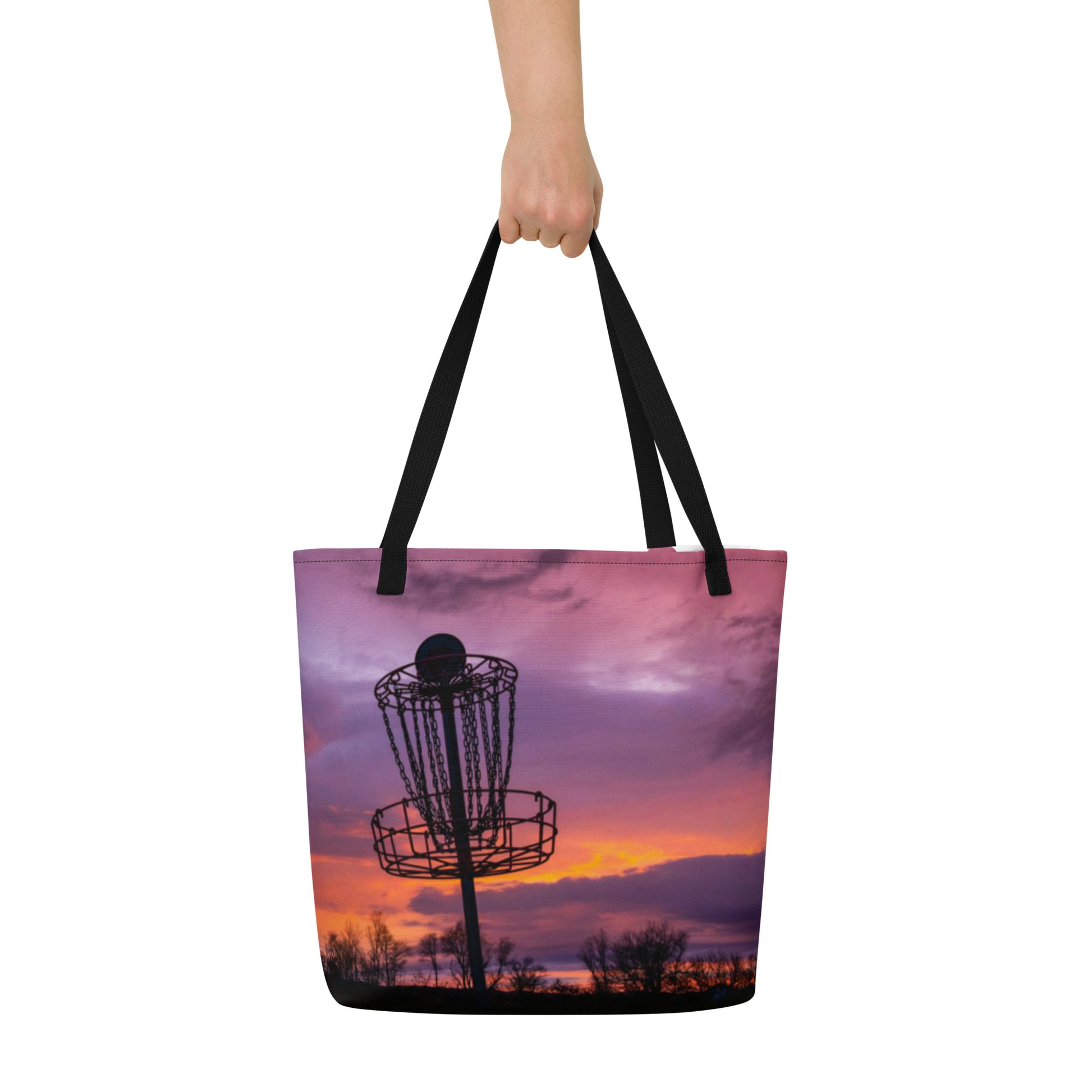 Disc Golf Sunrise Large Tote Bag with pocket