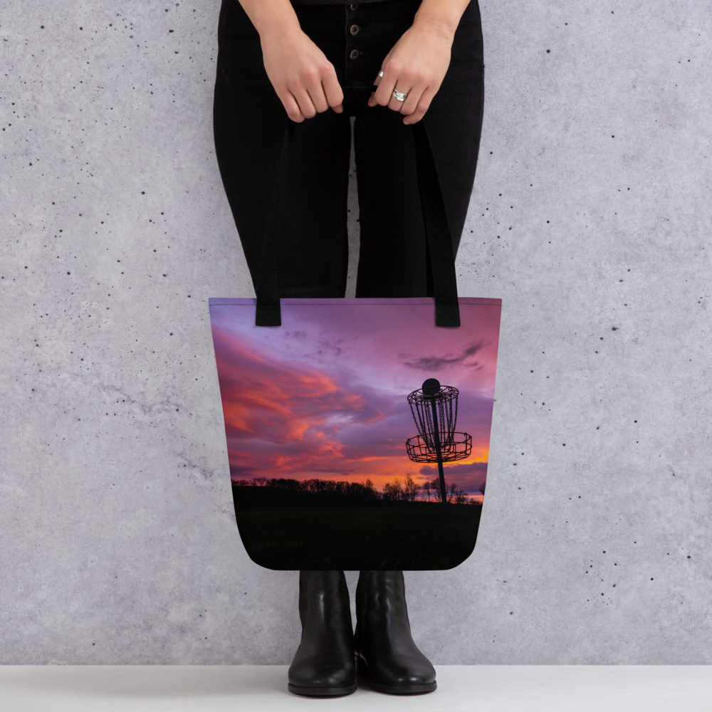 The photo featured was taken at Twin Grove hole 9, in Pine Grove, PA. 21 April 2021, we were there for the Cubby Memorial weekend. I was sleeping in the recliner in cabin A72 and I woke up randomly at about 6:30am. All the windows were this eerie purple and I grabbed the camera and quietly snuck out to not wake up anyone else. The cabin is right next to hole 7, and a short walk to hole 9 which features a basket at the top of a wide open hill with no trees nearby. I took about 70 pictures before the colors faded to a dull yellow. This was my favorite one of the day and one of my favorites ever. That's why it's my first choice to be featured this way. -Dave Cox