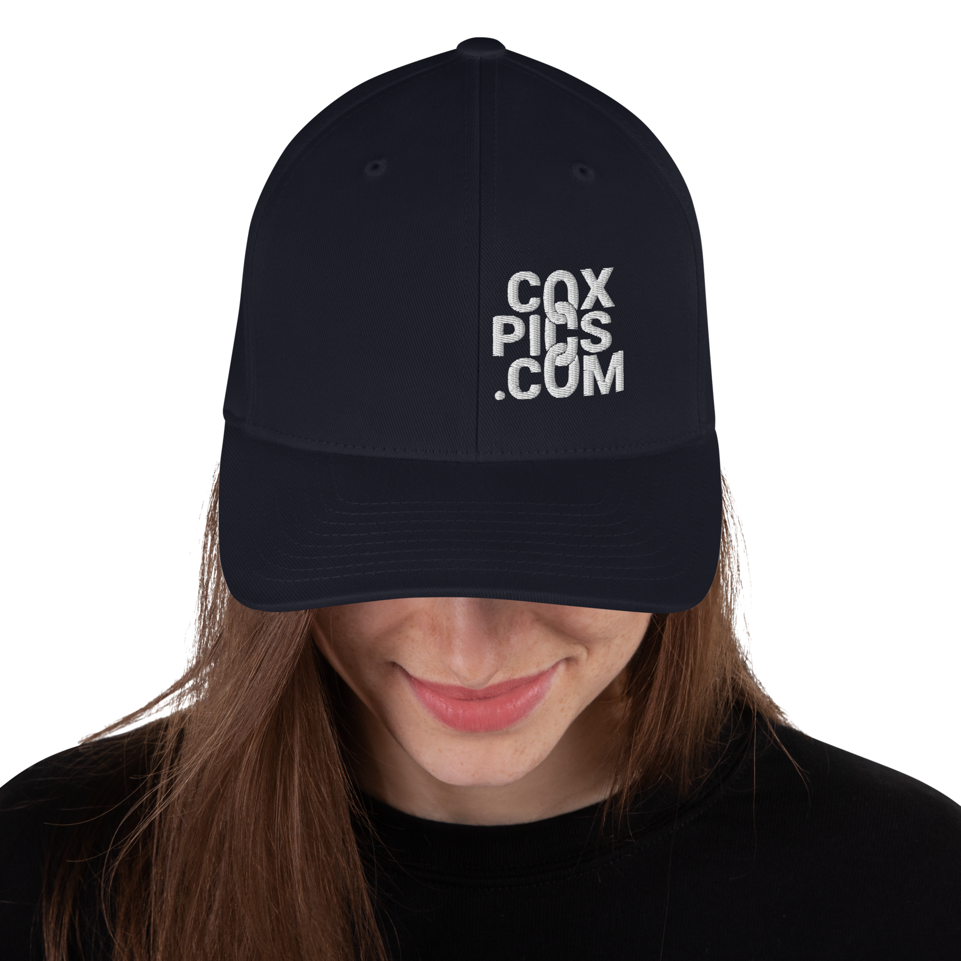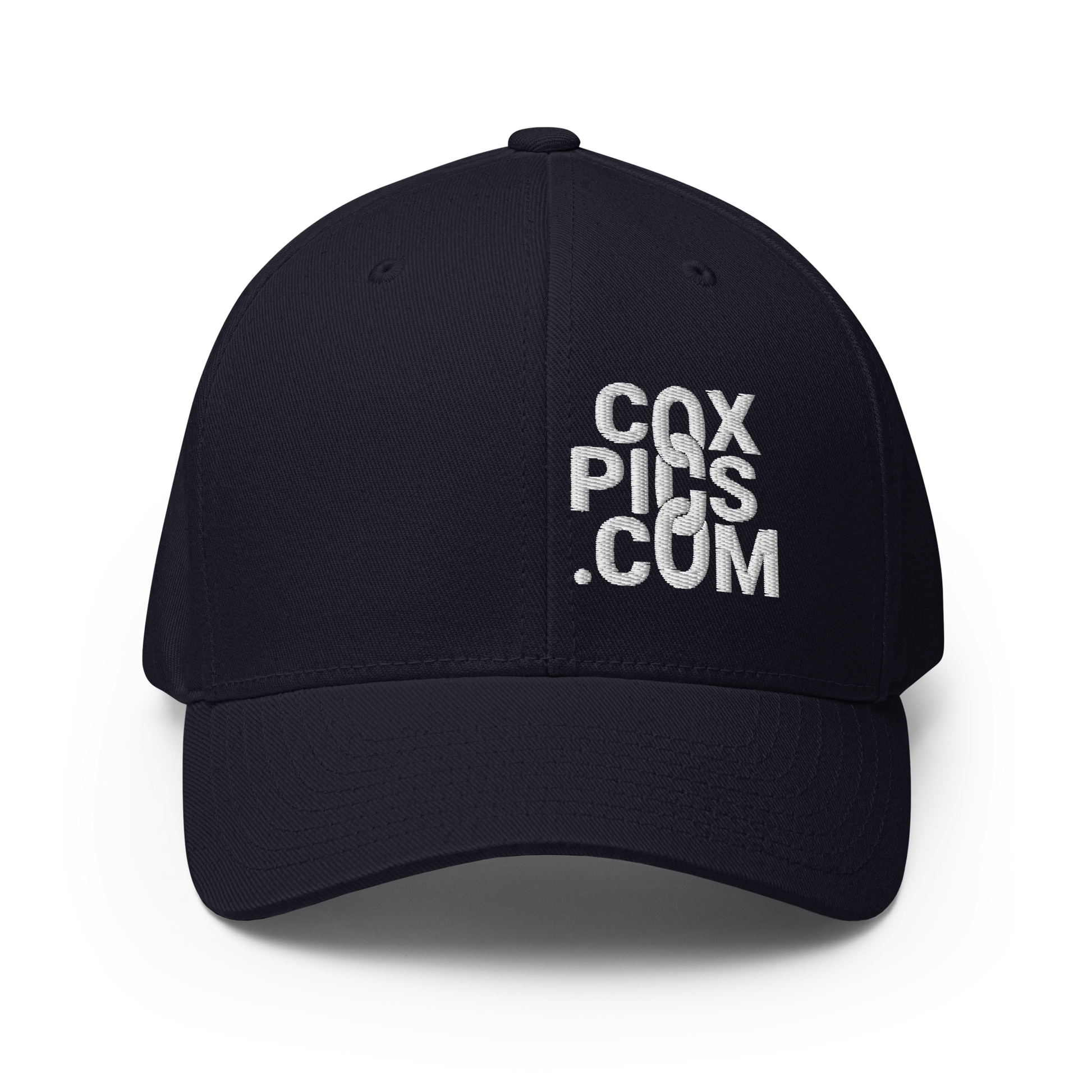 CoxPics.com Logo Embroidered Flexfit Structured Twill Cap (White Thread)